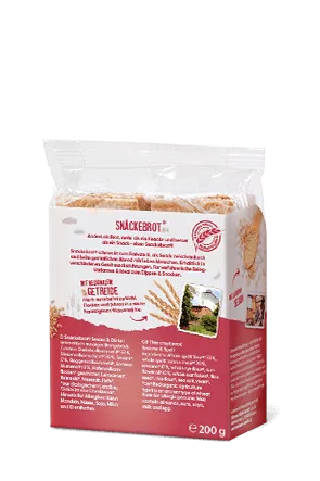 Zutaten: DINKELvollkornmehl*¹ 33 %, DINKELvollkornschrot*¹ 20 %, SESAM* 17 %, ROGGENvollkornmehl*, Sonnenblumenöl* 11 %, HAFERvollkornflocken* geschrotet, Leinsamen* 4%, Reismehl*, Meersalz, Hefe*, Antioxidationsmittel: Rosmarinextrakt*.